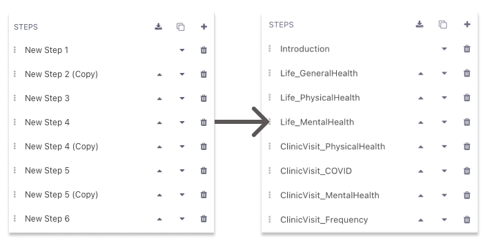 The set of step identifiers on the left can cause a headache when trying to map and understand the survey responses.