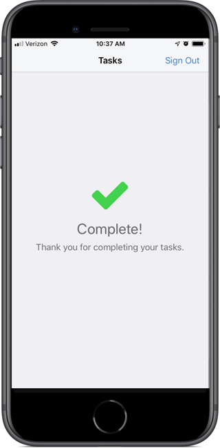 - Once the participant has completed the surveys, the coordinator should select “Sign Out” so the device is ready for the next participant.