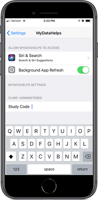 - Go to the mobile device’s Application Settings screen ("Settings -> MyDataHelps").