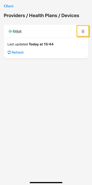 - Tap the trash icon to remove the Fitbit connection.
