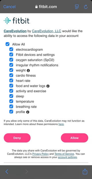 It is also a good idea for participants to allow access to Fitbit devices and settings; this access helps with syncing Fitbit.