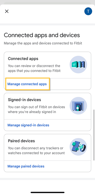 - Select "Connected apps and devices" > "Manage connected apps".