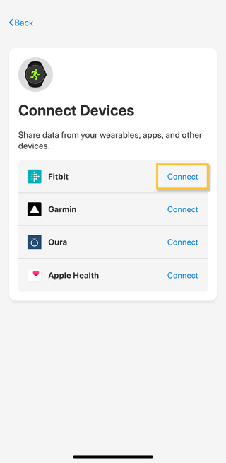 - Tap "Connect" next to Fitbit.