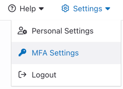 When logged in to MyDataHelps Designer, you can access your current MFA Settings from the Settings menu in the top, right corner.