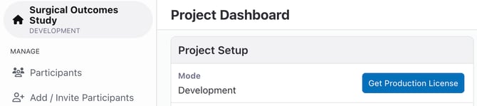 - Once a production license is granted, you can click "Enter Production Mode" on your project's home dashboard.