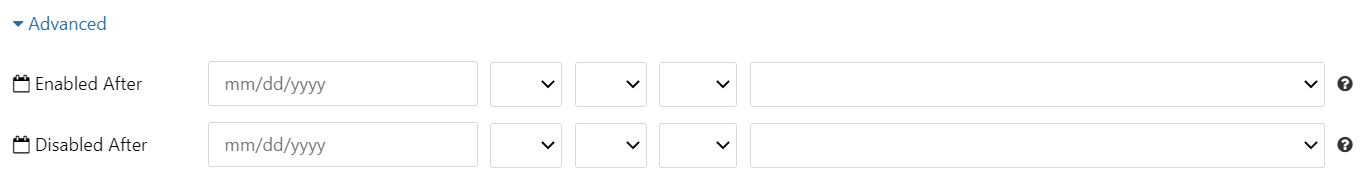 - Advanced (Active Dates): The Advanced section allows you to choose active dates for your schedule (applicable for all schedules except "Based on a Specific Date" schedules). You can choose a date and time to either enable or disable the schedule.