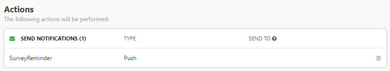 Finally, configure the Actions section to send the "SurveyReminder" push notification and click Save.