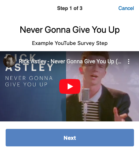 The YouTube step allows user to watch a public video hosted on YouTube.